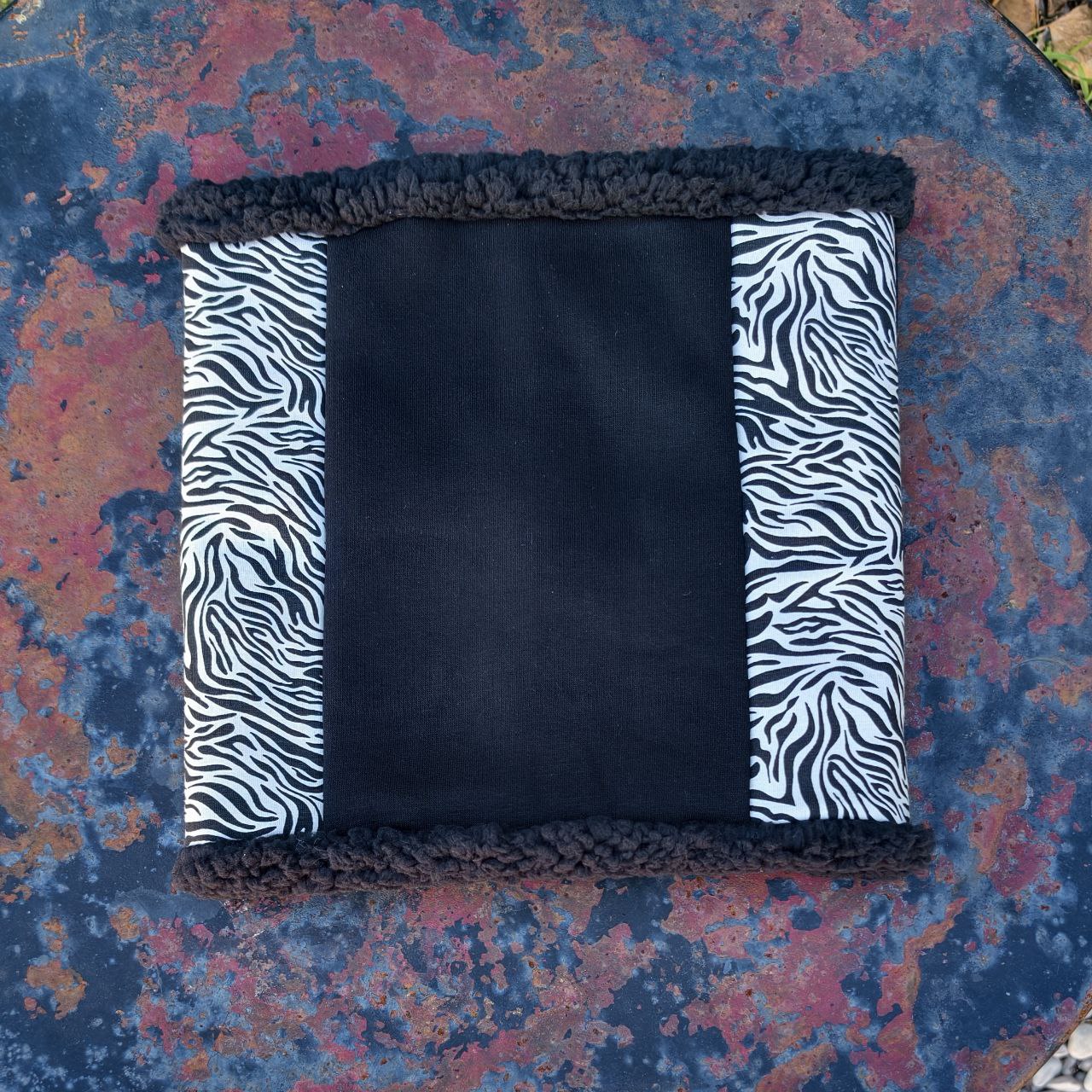 Braga para el cuello cebra clásica con interior de sherpa. Muy suave. Si la quieres con interior de coralina puedes contactar para ver disponibilidad