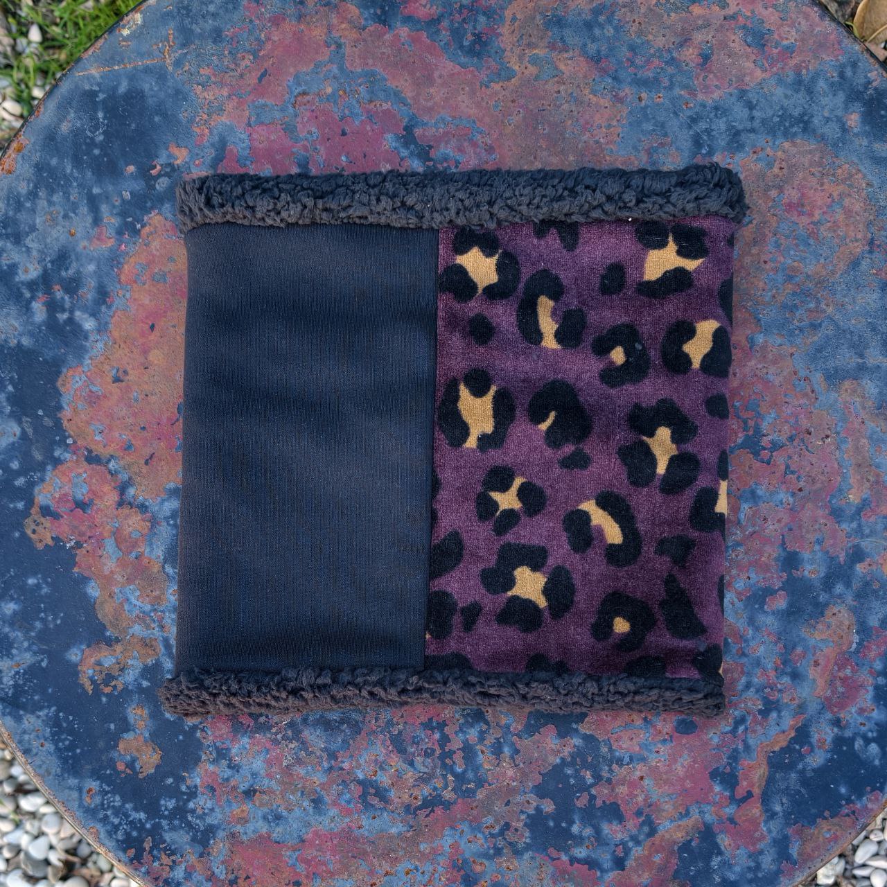 Braga para el cuello mitad leo granate con interior de sherpa. Muy suave. Si la quieres con interior de coralina puedes contactar para ver disponibilidad