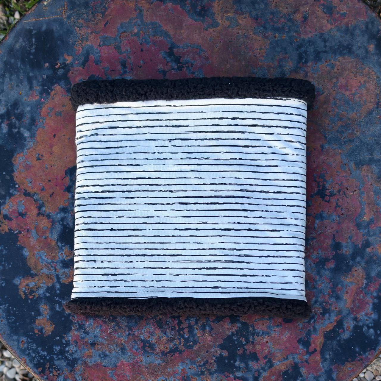 Braga para el cuello rayas con interior de sherpa. Muy suave. Si la quieres con interior de coralina puedes contactar para ver disponibilidad