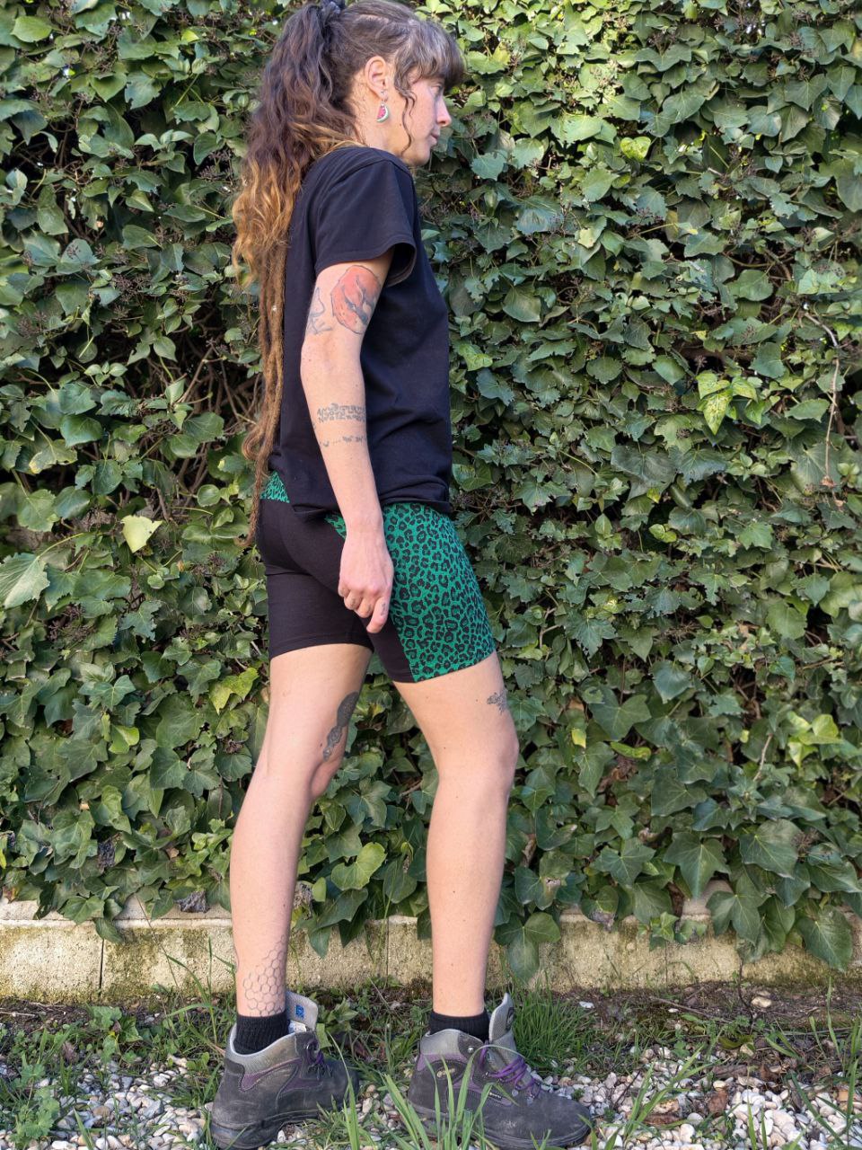 Leggins cortos de leopardo verde, originales y con un toque algo punk. Hechos de algodón, son cómodos y versátiles, ¡una prenda básica que no puede faltar en tu armario!
